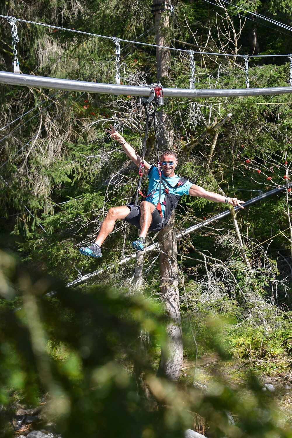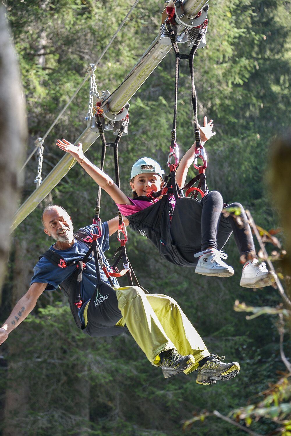Adrenalin gefällig? Dann ab zur Fly-Line bei den Reinbach-Wasserfällen! Gut gesichert schwebt ihr auf einem 850 Meter langen Stahlseil durch die Baumwipfel, mit Blick auf tosende Wasserfälle und satte Natur. Ganz gemütlich mit etwa 10 km/h, aber hoch genug, um Herzklopfen zu kriegen. Ein Erlebnis zwischen Nervenkitzel und Naturgenuss.